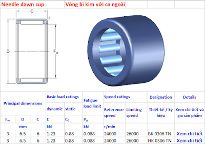 Vòng bi kim - vòng bi kim kèm ca trong hoặc không kèm ca trong